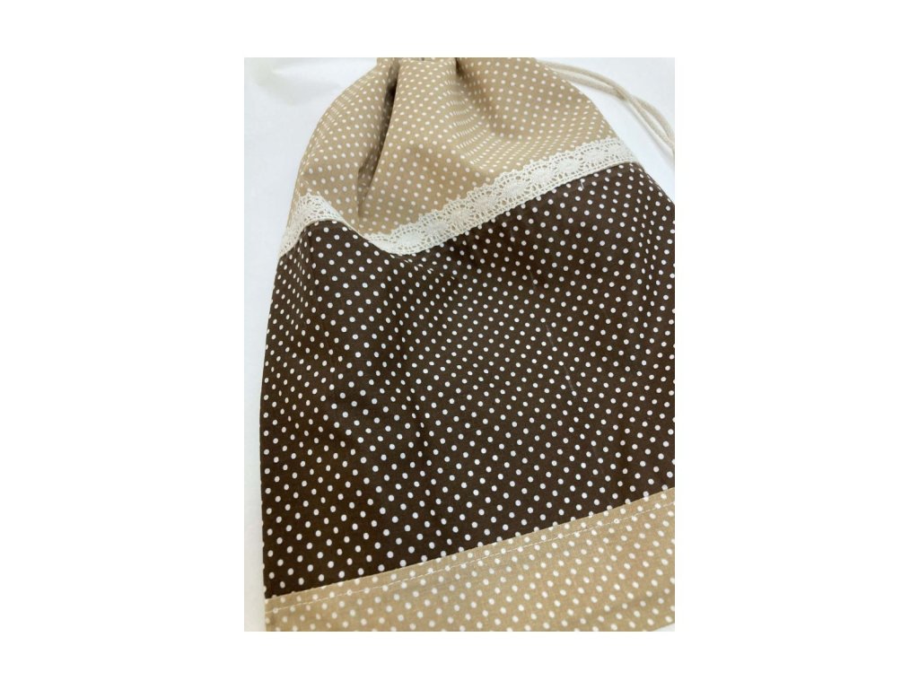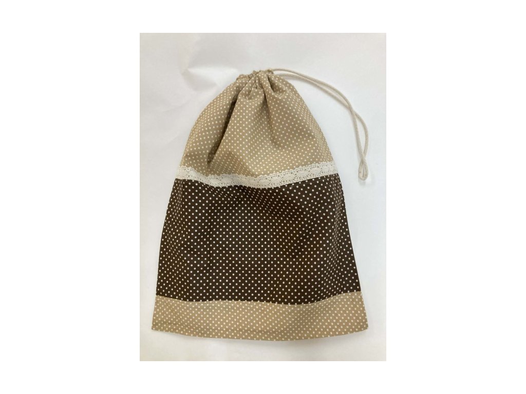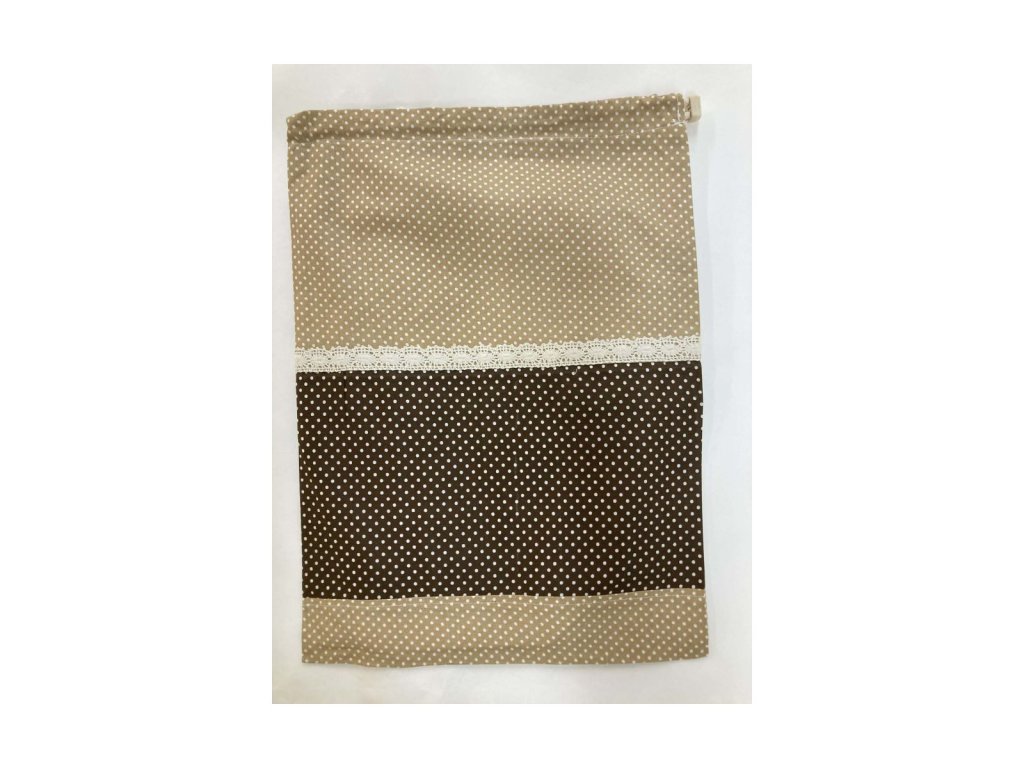 Barna–bézs pöttyös frissentartó kenyereszsák Háromrétegű, csipkés kenyértároló zsák