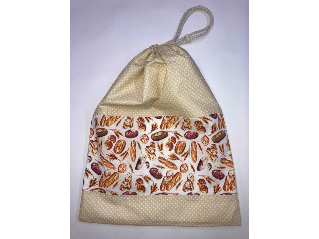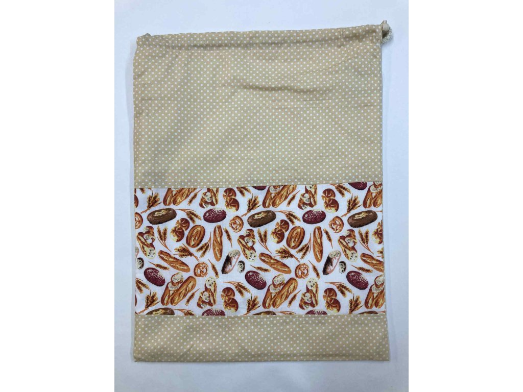 Behúzós kenyeres zsák – bézs pöttyös és pékáru mintás