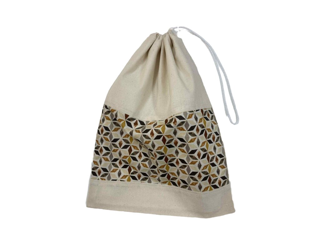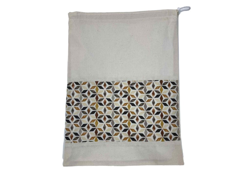 Ez a geometriai mintás behúzós kenyeres zsák nemcsak praktikus, hanem stílusos kiegészítője is a konyhának. A zsák belsejében található PUL bélés megőrzi a pékáruk frissességét, mivel egyszerre engedi szellőzni a kenyeret és tartja meg a nedvességét. A pamut külső és a mosható belső anyag tartóssá és higiénikussá teszi. Ideális választás cipók, kiflik, zsömlék vagy sütemények tárolására. Használatával egyszerre óvod a környezetet és a mindennapokban is könnyebbé teszed a hulladékmentes életmódot.
