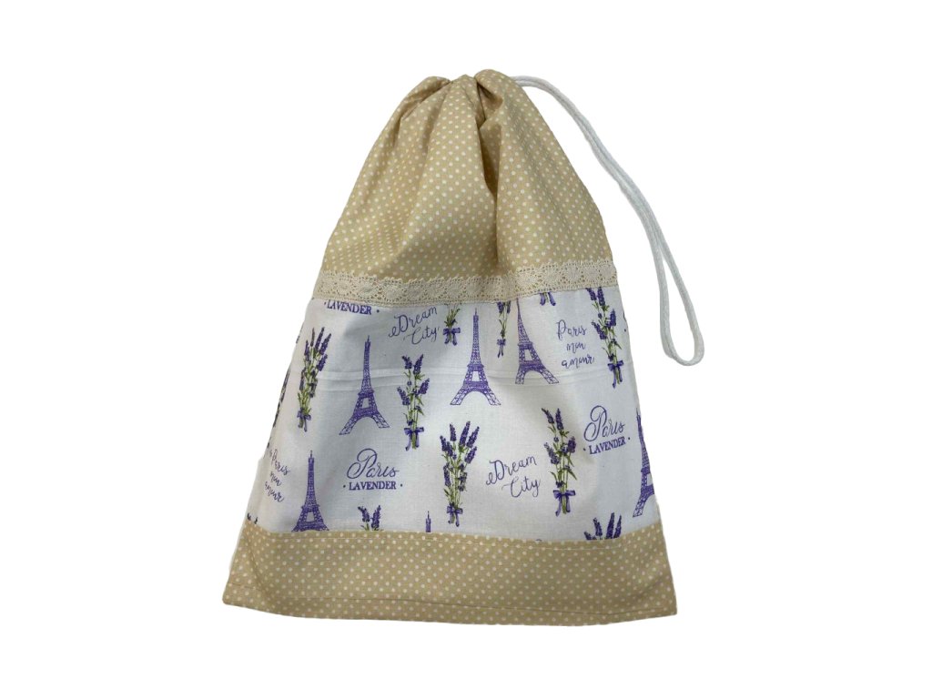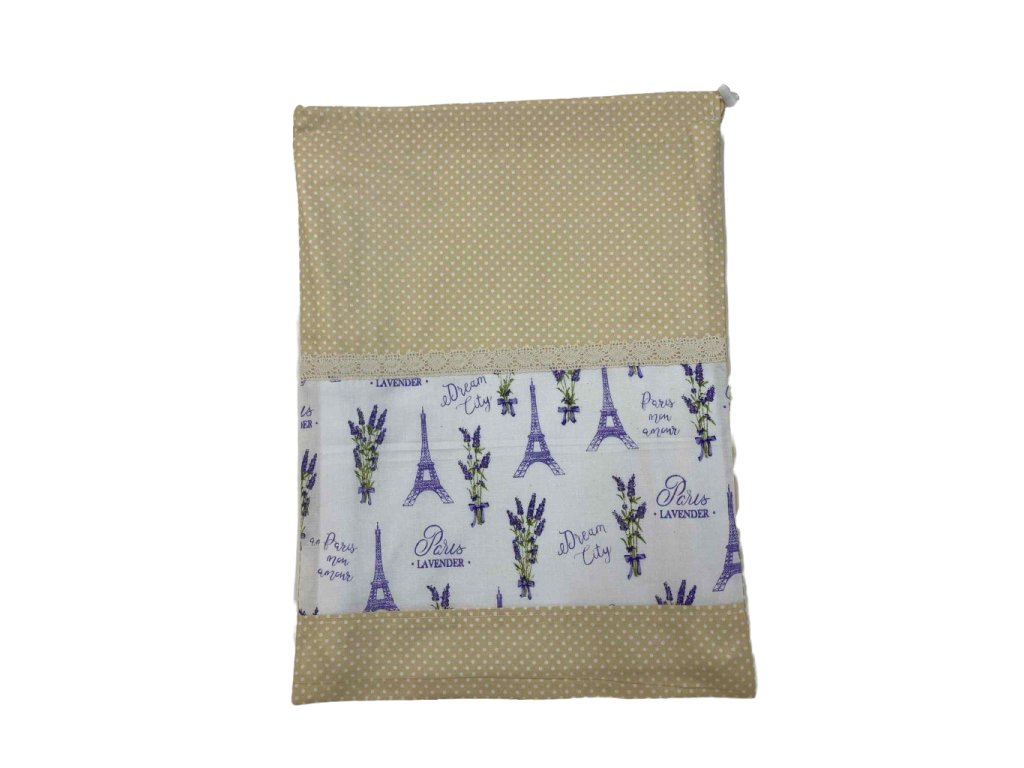 Behúzós kenyeres zsák – levendulás, Eiffel-torony mintás