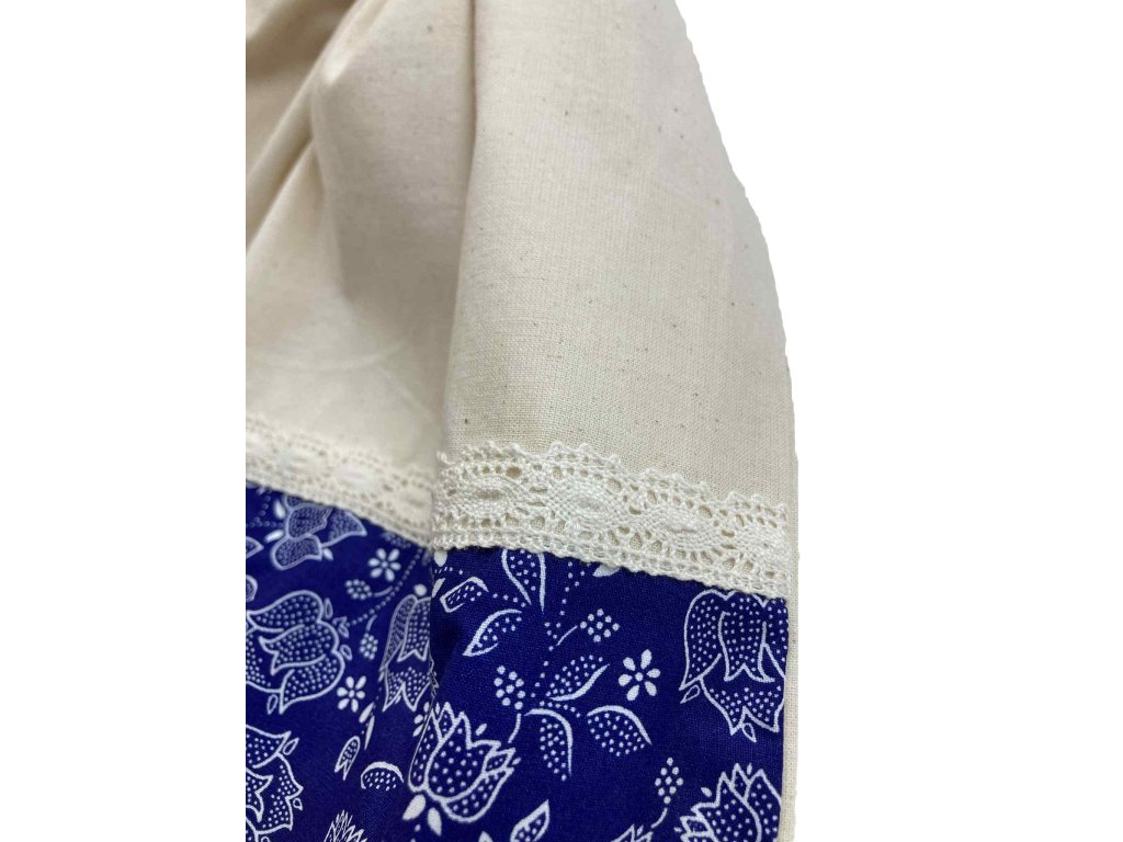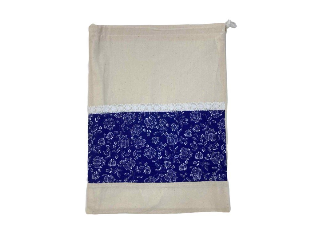 Behúzós kenyeres zsák – natúr pamut kék tulipán mintával, csipkével és PUL béléssel