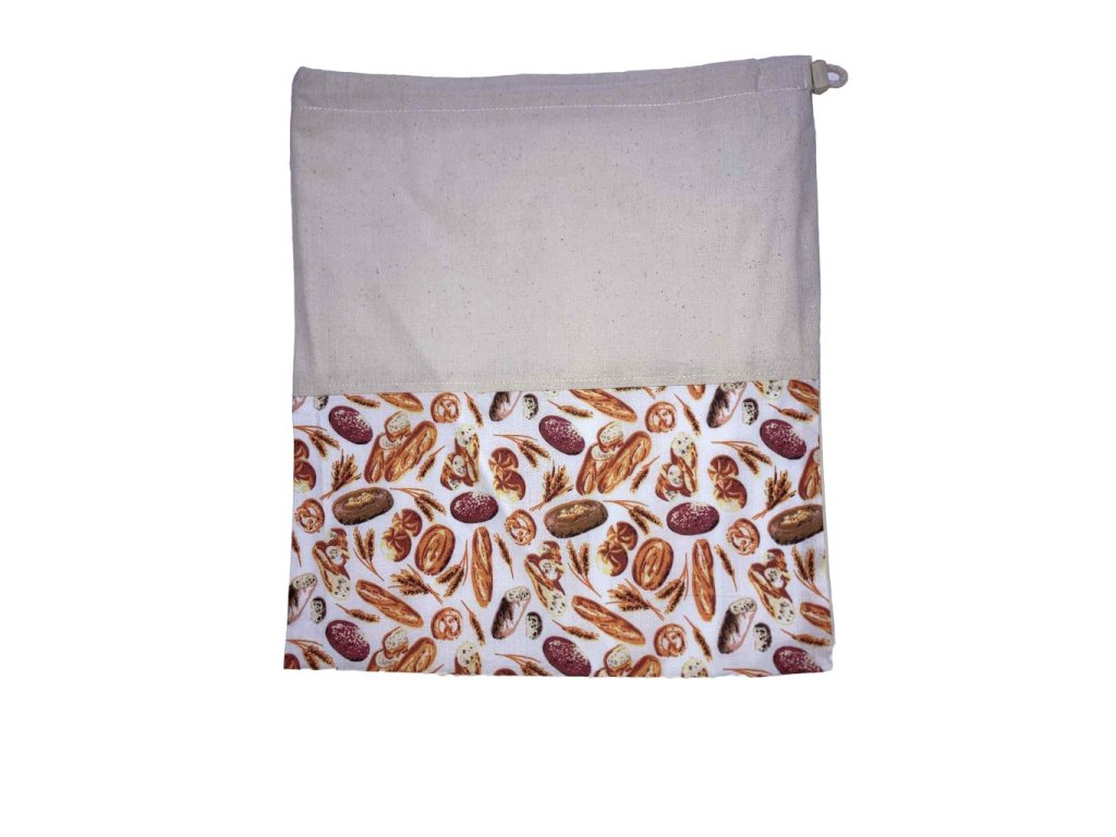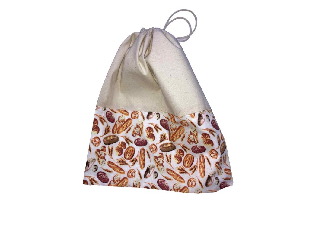 Behúzós kenyeres zsák – natúr pamut kenyérmintás betéttel és PUL béléssel
