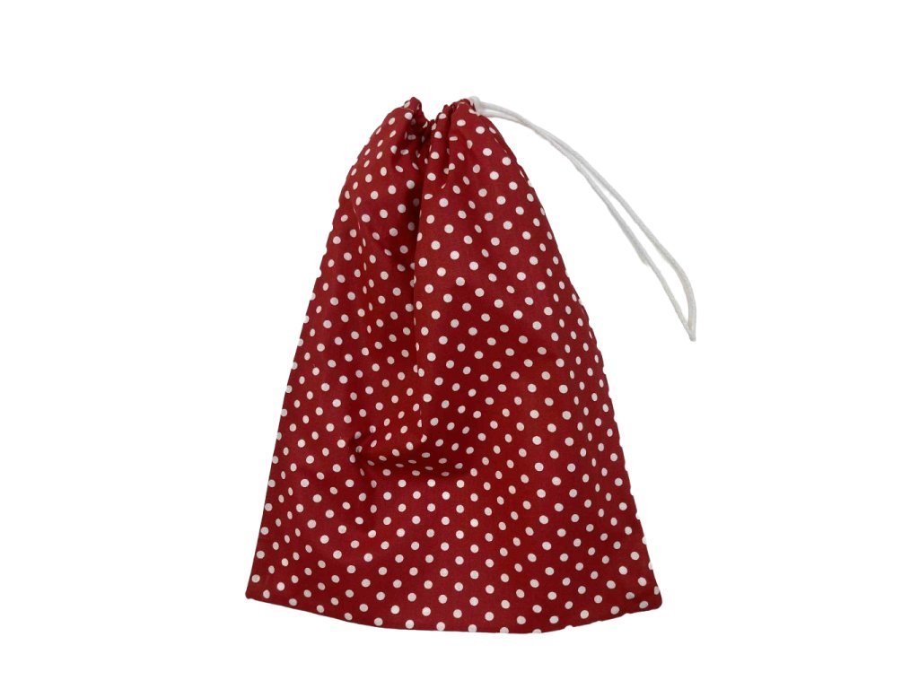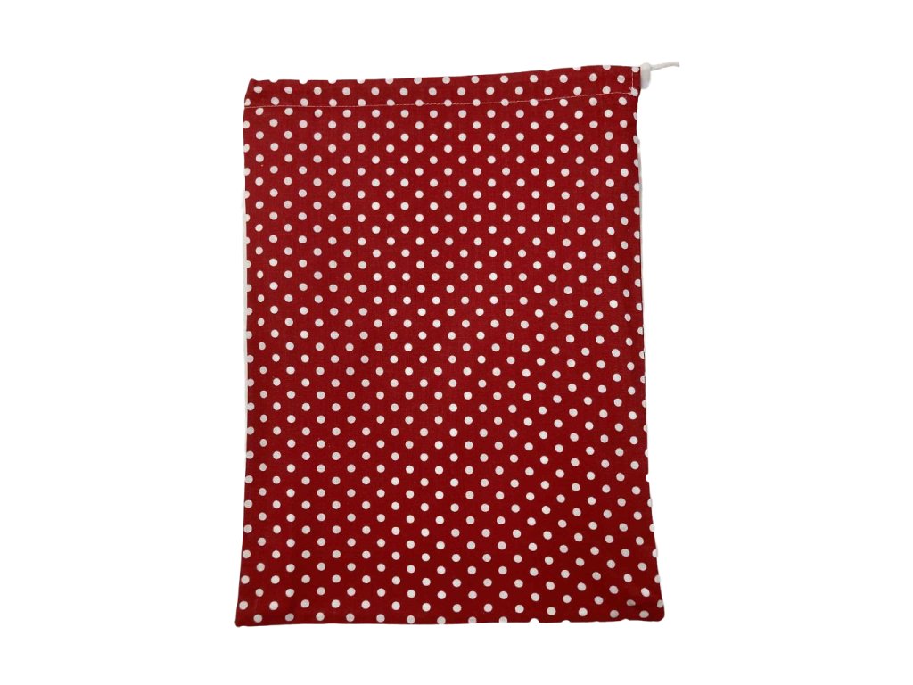 Behúzós kenyeres zsák – piros alapon fehér pöttyös