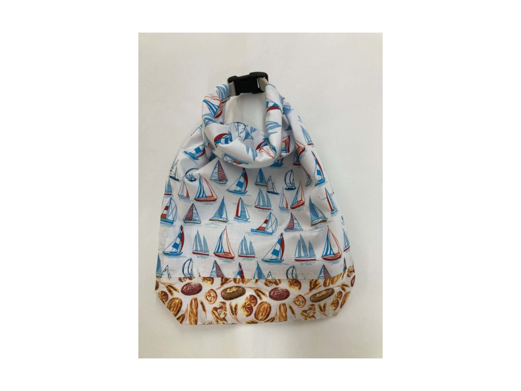 Frissentartó kenyereszsák – vitorlás mintával, csatos záródással Páraáteresztő, mosható, újrahasználható kenyértartó zsák