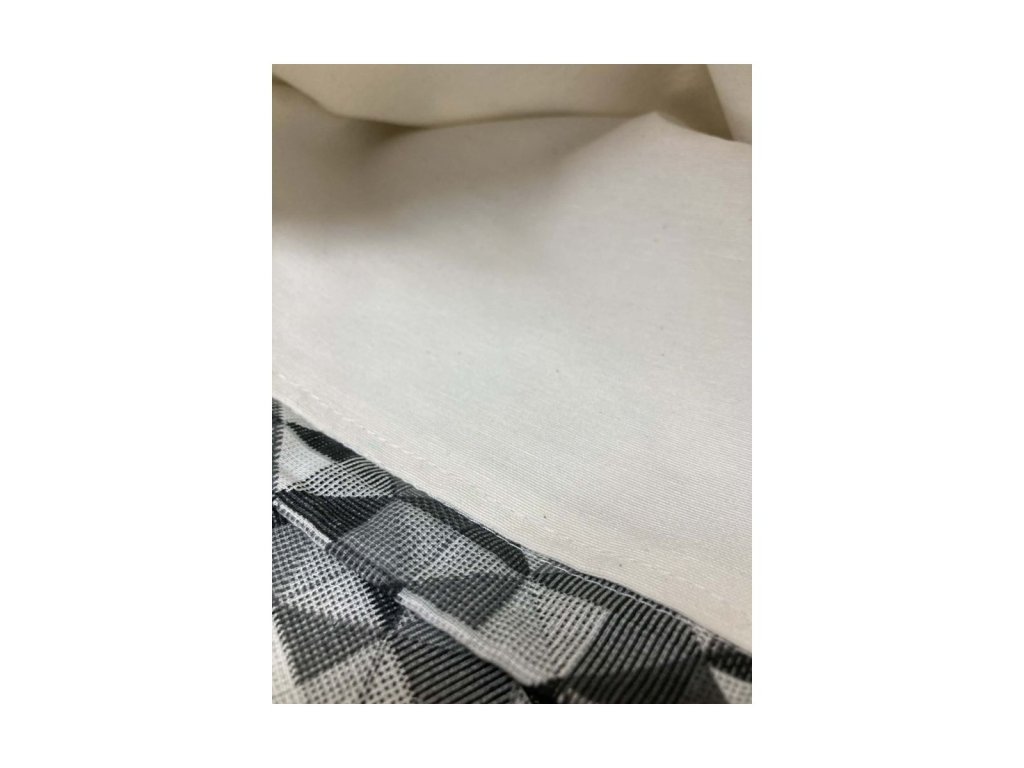 A fekete-fehér-szürke háromszögmintás kenyérzsák minimalista stílusával és praktikus kialakításával tökéletes választás a modern konyhákba. A 30×40 cm-es méret ideális házi kenyerekhez, hosszabb veknikhez vagy többféle péksüteményhez.A fekete-fehér-szürke háromszögmintás kenyérzsák minimalista stílusával és praktikus kialakításával tökéletes választás a modern konyhákba. A 30×40 cm-es méret ideális házi kenyerekhez, hosszabb veknikhez vagy többféle péksüteményhez.A háromrétegű felépítés biztosítja a kenyér frissességét:• A belső pamut tapintású réteg gyengéden körbeöleli a pékárut• A középső párazáró réteg megakadályozza a kiszáradást• A külső 100% pamut textil pedig tartós és letisztult megjelenést biztosítA zsák fagyasztóbarát, így a kenyér nem veszíti el ropogós héját vagy puha belsejét. Mosható, újrahasználható és környezetbarát – ideális választás azoknak, akik a funkcionalitást modern, geometrikus stílussal szeretnék ötvözni.