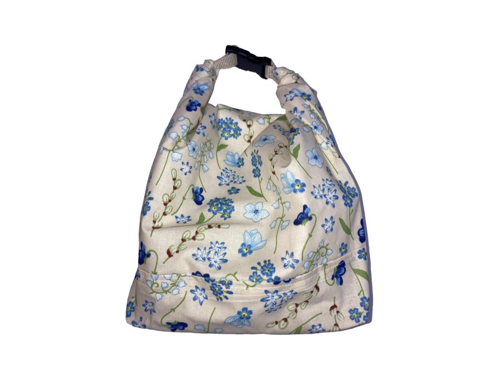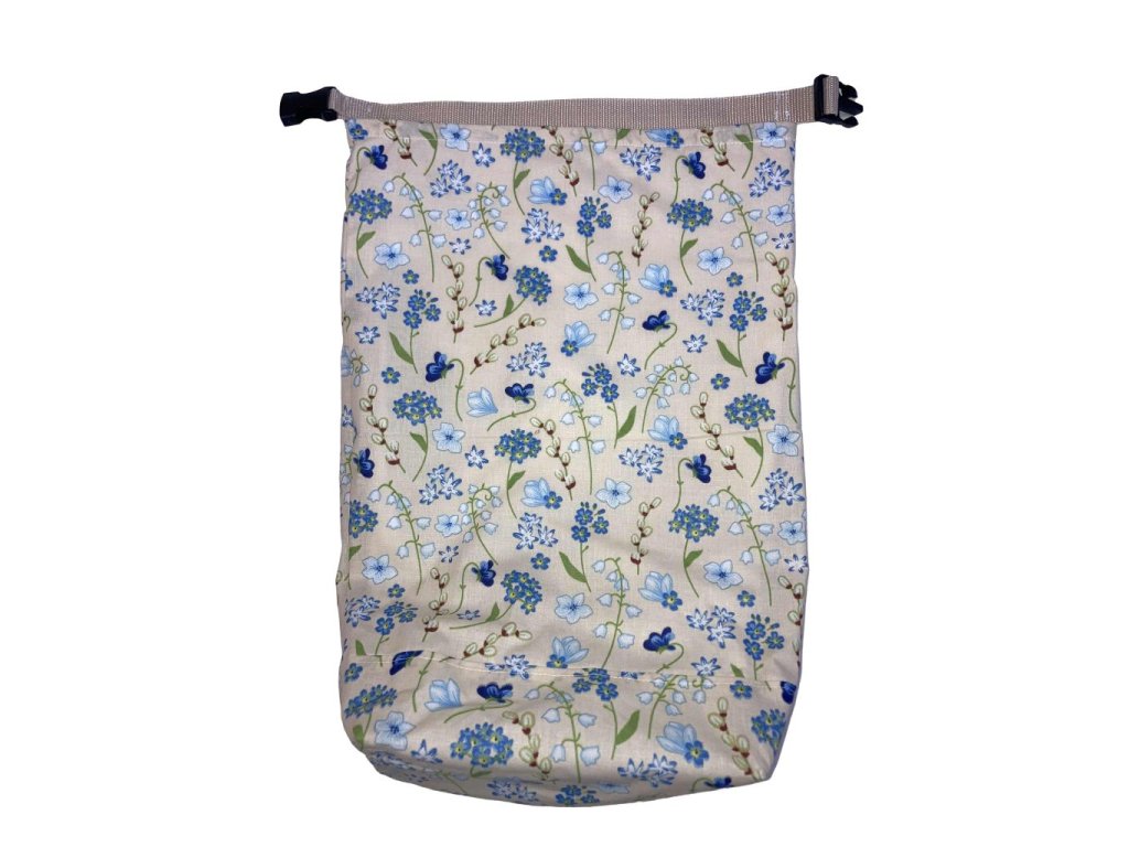 Füles kenyeres zsák – bézs alapon kék virágmintás, PUL béléssel