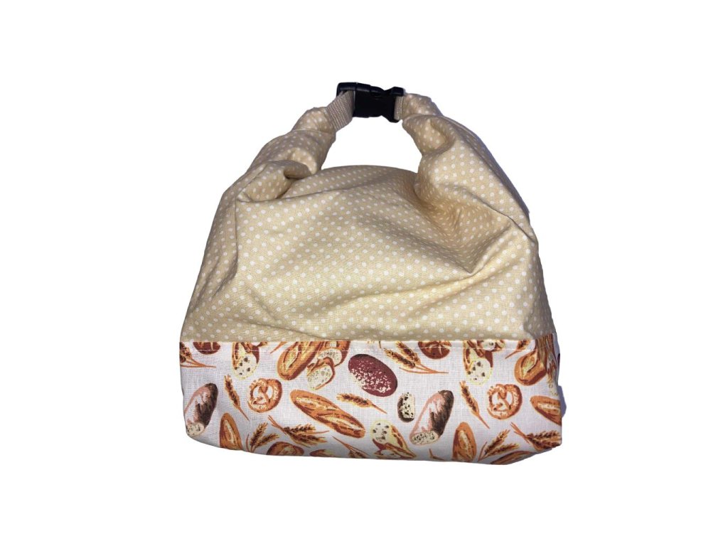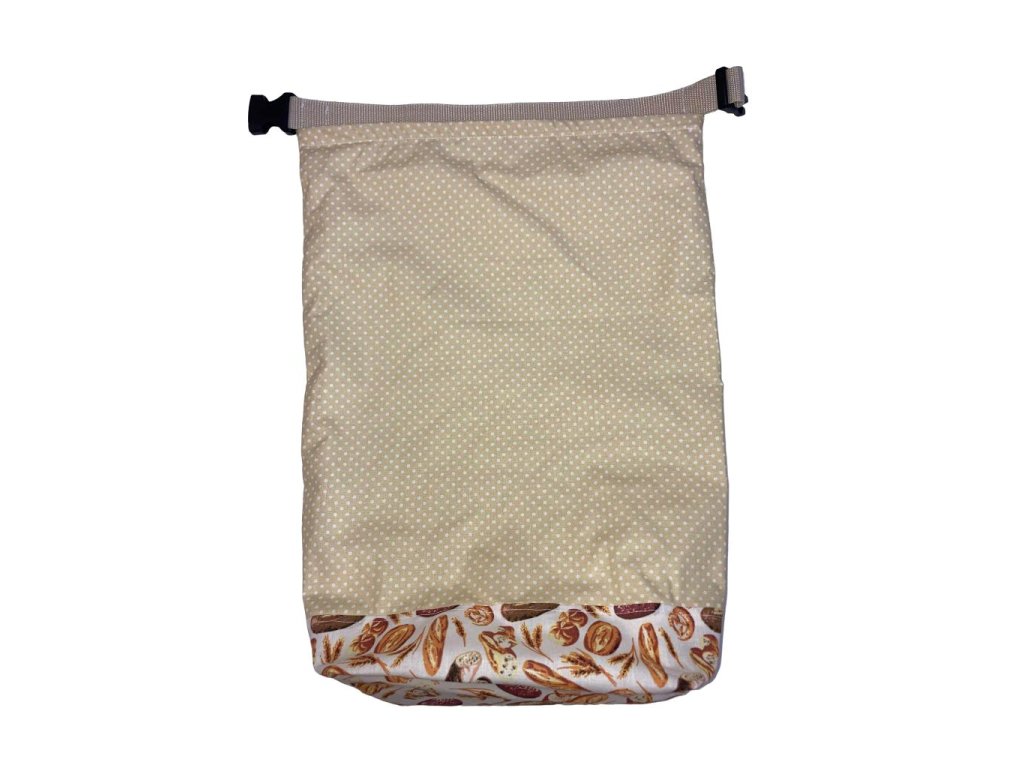Füles kenyeres zsák – bézs pöttyös kenyérmintás szegéllyel, PUL béléssel