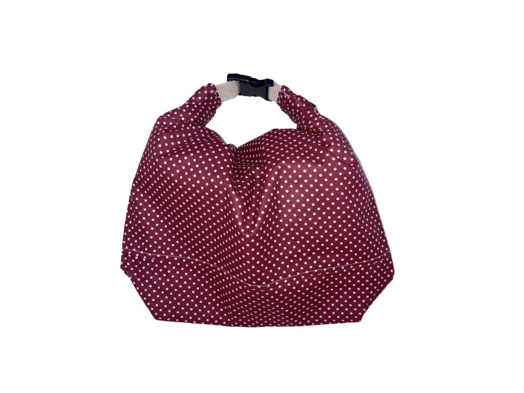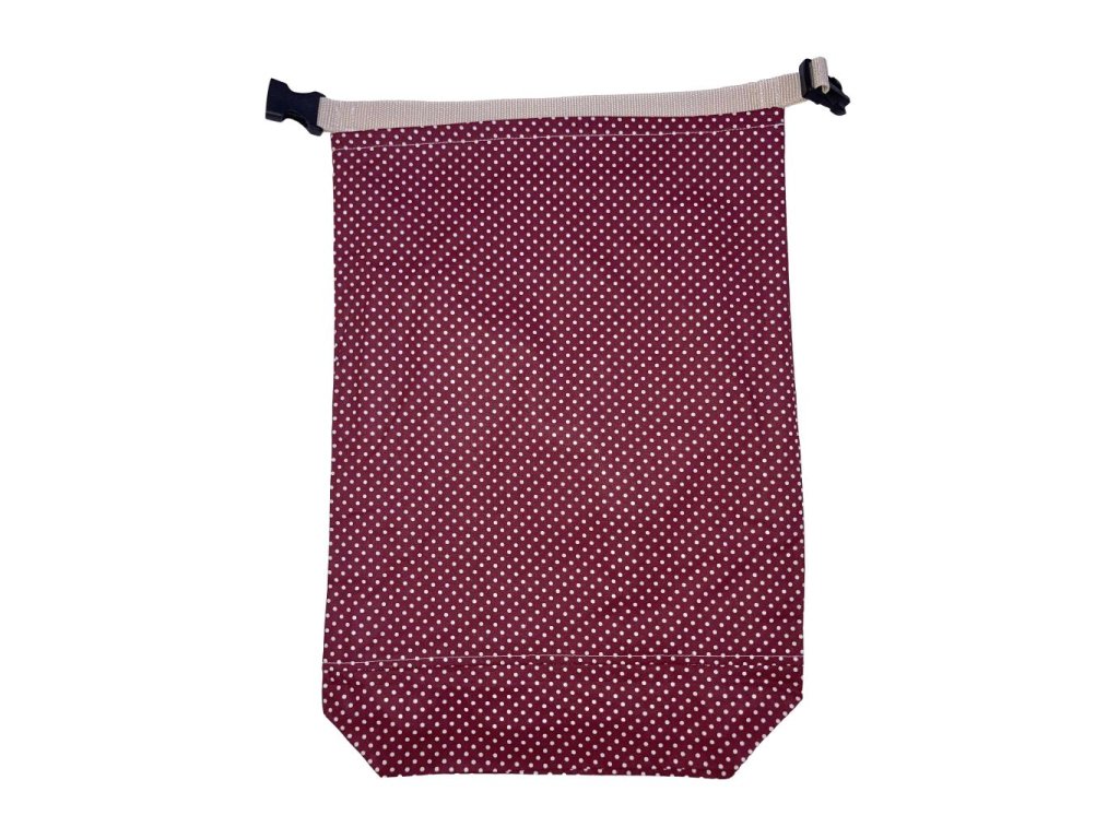 Füles kenyeres zsák – bordó alapon fehér pöttyös pamut PUL béléssel