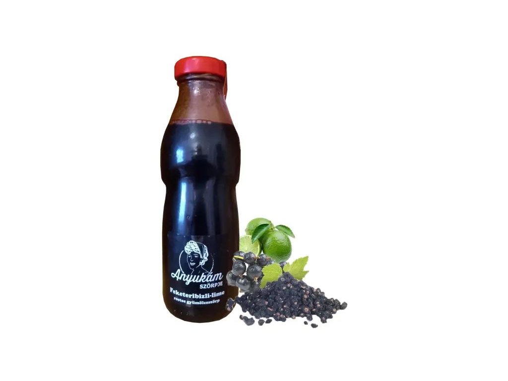 Kézműves feketeribizli-lime gyümölcsszörp 500 ml Természetes, kézműves rostos szörp feketeribizlivel és lime-mal