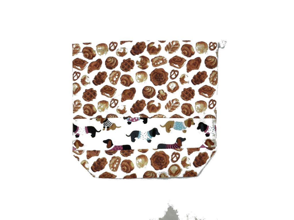Ez a kis cipós zsák igazán különleges, hiszen a pékárus mintát vidám, kutyás motívum egészíti ki, amely egyedi hangulatot kölcsönöz neki. Kisebb kenyerek, kiflik, zsemlék vagy más péksütemények tárolására ideális választás. A strapabíró pamut külső és a PUL bélés együtt gondoskodik arról, hogy a pékáru megőrizze frissességét, miközben a tasak légáteresztő marad. A praktikus behúzózár gyors és biztonságos használatot biztosít. Könnyen tisztítható, mosógépben is mosható, így hosszú ideig társad lesz a környezettudatos mindennapokban.