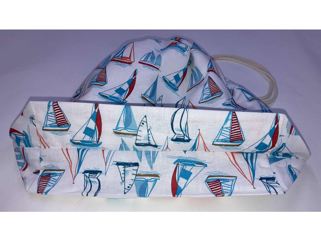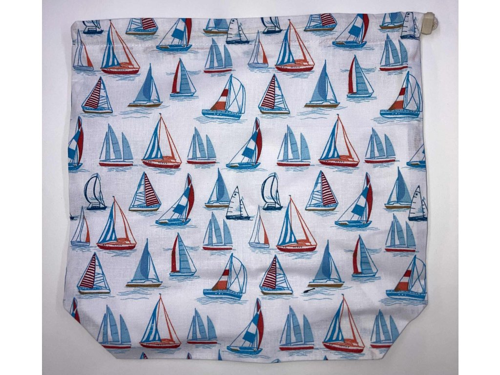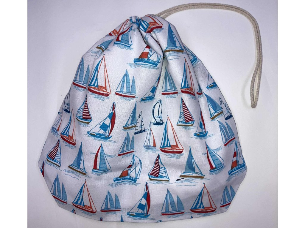 Ez a vitorlás mintás kis cipószsák vidám és egyedi megoldást nyújt a pékáruk tárolására. Mérete ideális kisebb cipókhoz, zsemlékhez vagy kiflikhez. Strapabíró pamut anyagból készült, amely mosható és újra felhasználható, így környezetbarát alternatívát kínál az egyszer használatos műanyag tasakok helyett. A behúzózár biztosítja a könnyű nyitást és zárást, miközben frissen tartja a belehelyezett pékárut. Ideális választás otthonra, piknikhez vagy ajándékba is.