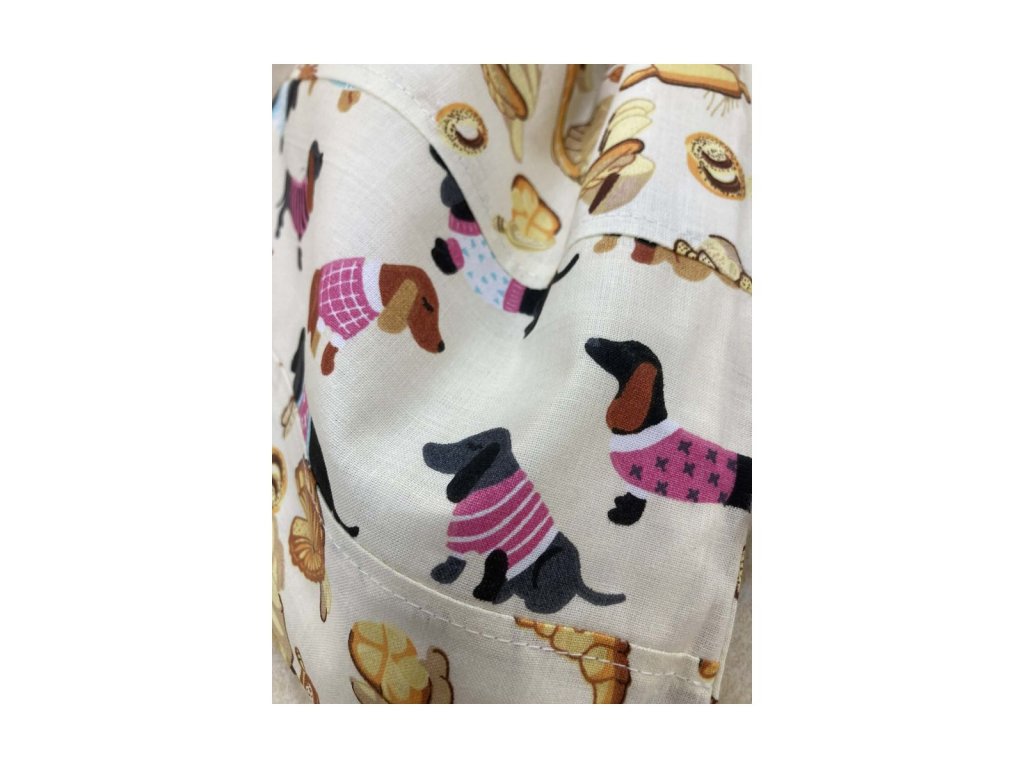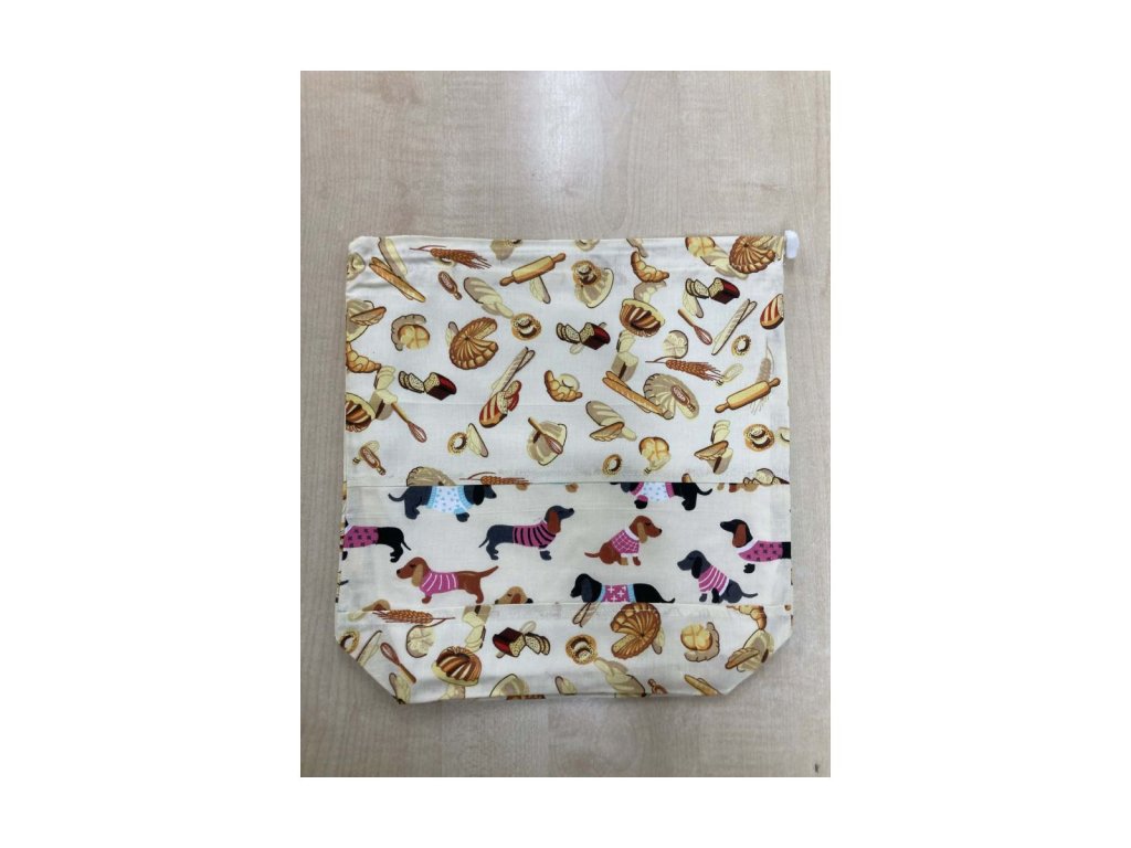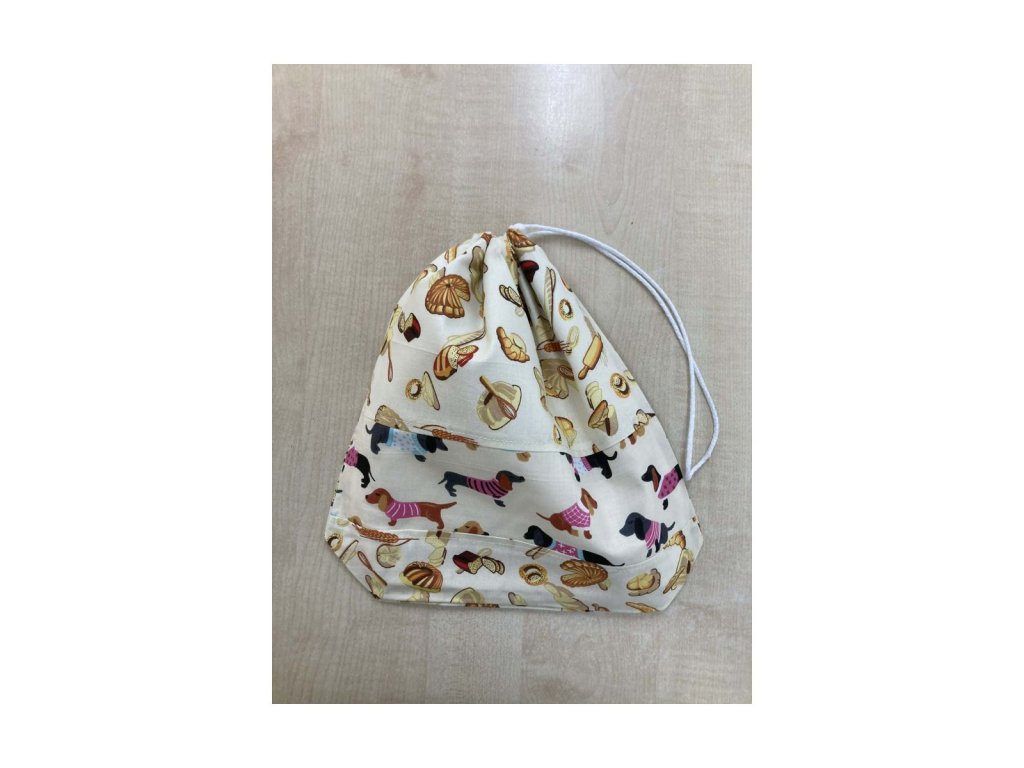 Kiscipós zsák – tacskós & péksüteményes mintával Puha pamut, kétrekeszes kialakítással