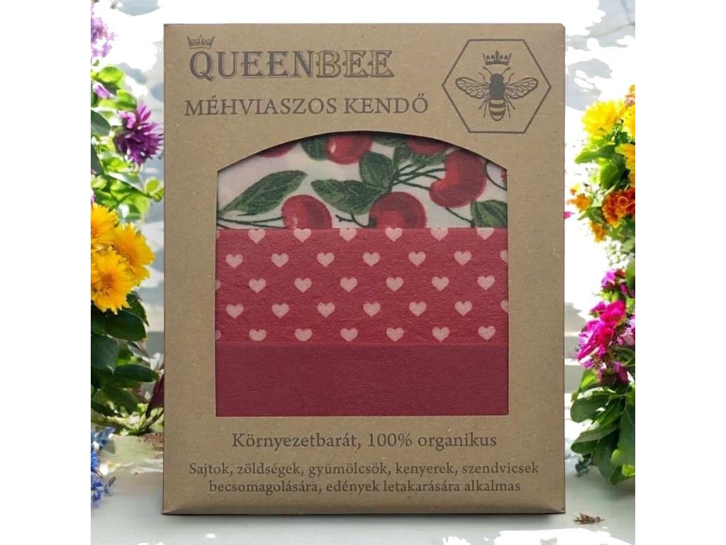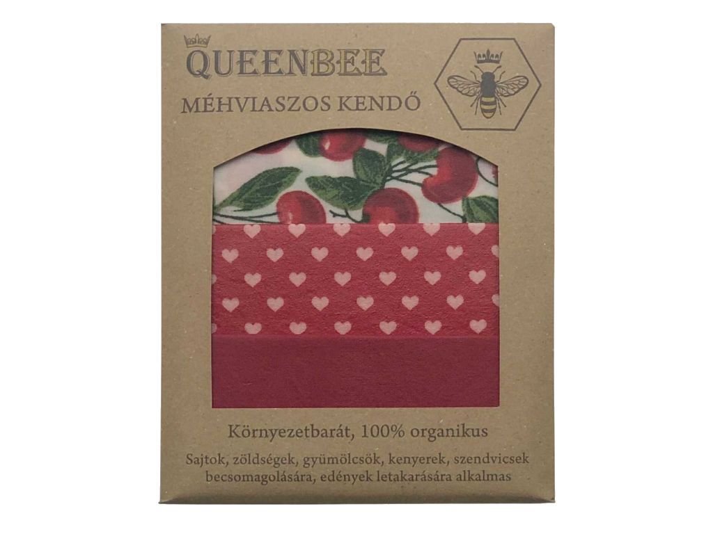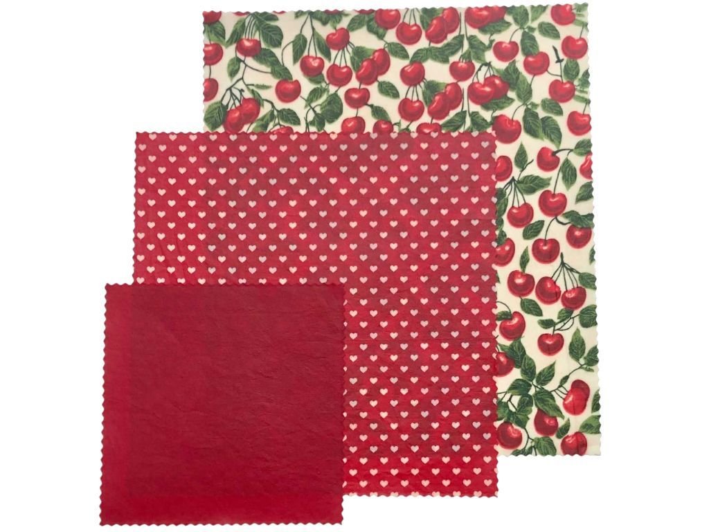 Méhviaszos kendő szett – piros szíves és cseresznyemintás