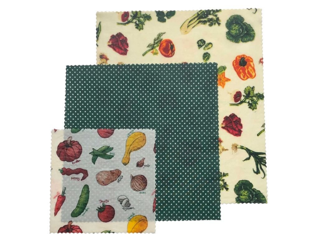 Méhviaszos kendő szett – zöldséges és pöttyös