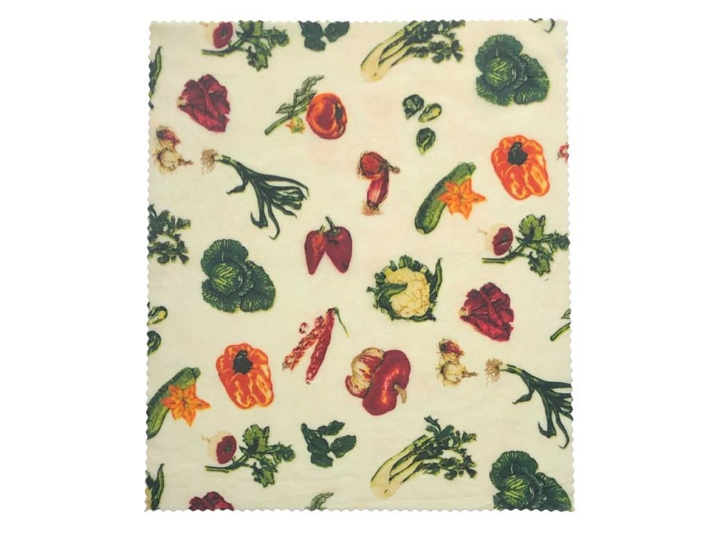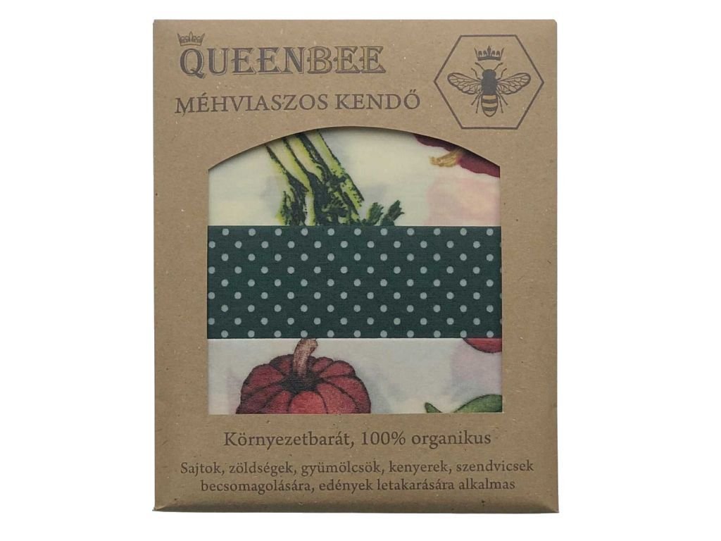 Ez a zöldséges és pöttyös mintákkal készült méhviaszos kendő szett három darabból áll, különböző méretekben. Ideális választás zöldségek, gyümölcsök, sajtok, kenyerek és szendvicsek becsomagolásához, valamint edények lefedéséhez. A kendők 100% pamut alapanyagból készültek, méhviasszal, jojobaolajjal és fenyőgyantával kezelve, így légáteresztők, mégis megőrzik az ételek nedvességtartalmát és frissességét. Hideg vizes öblítéssel könnyen tisztíthatók, és sokszor újra felhasználhatók. A vidám zöldséges és pöttyös minták különleges hangulatot visznek a konyhába, miközben hozzájárulnak a fenntartható életmódhoz.