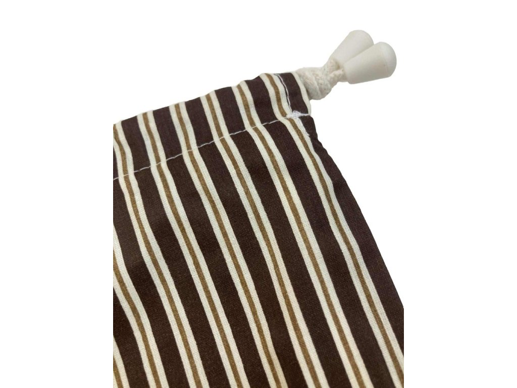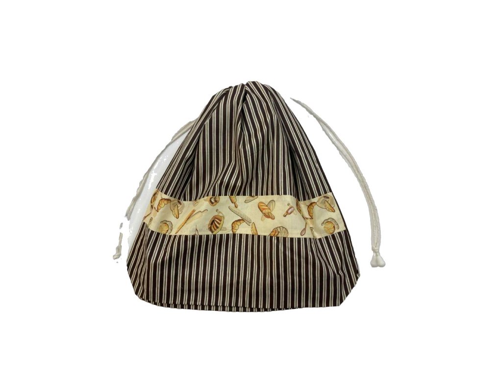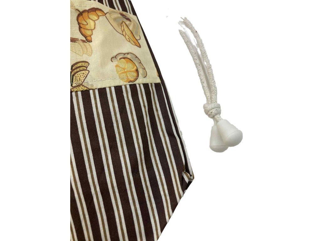Ez a barna csíkos, pékárus mintás cipós zsák klasszikus hangulatot idéz. Nagy belső tere kényelmesen elnyeli a kenyeret, cipót vagy akár kalácsot is. Anyaga jól szellőzik, így a pékáru nem penészedik meg gyorsan, mégis megőrzi a frissességét. Könnyen tisztítható, és többször felhasználható, ami hosszú távon pénzt és rengeteg felesleges csomagolóanyagot spórol.