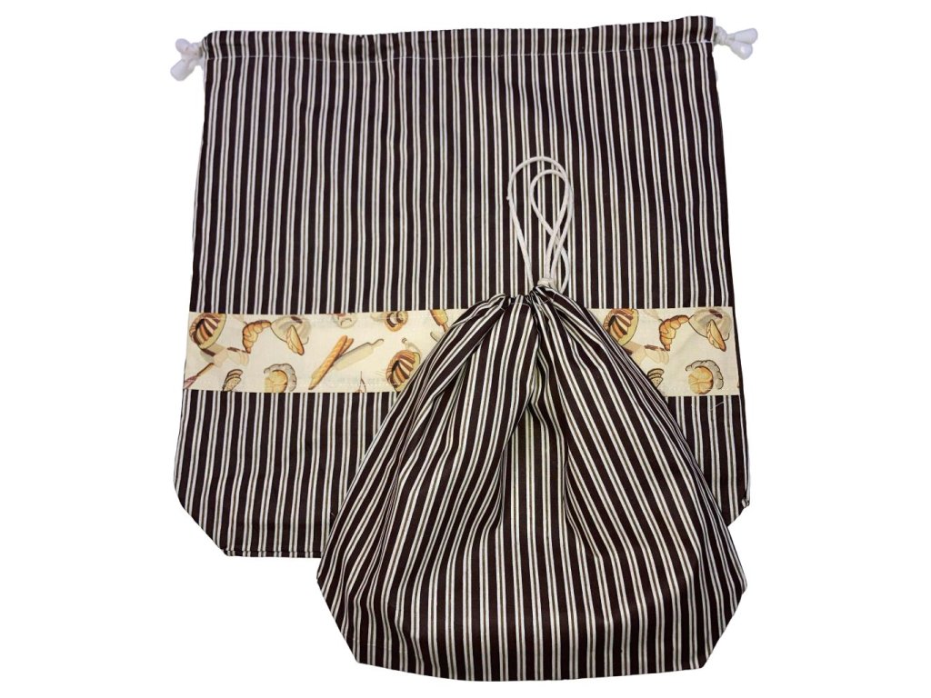 Nagy cipós zsák – barna csíkos, pékárus mintával