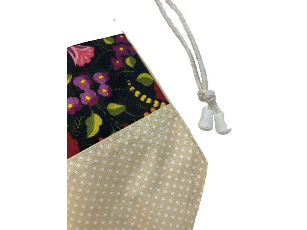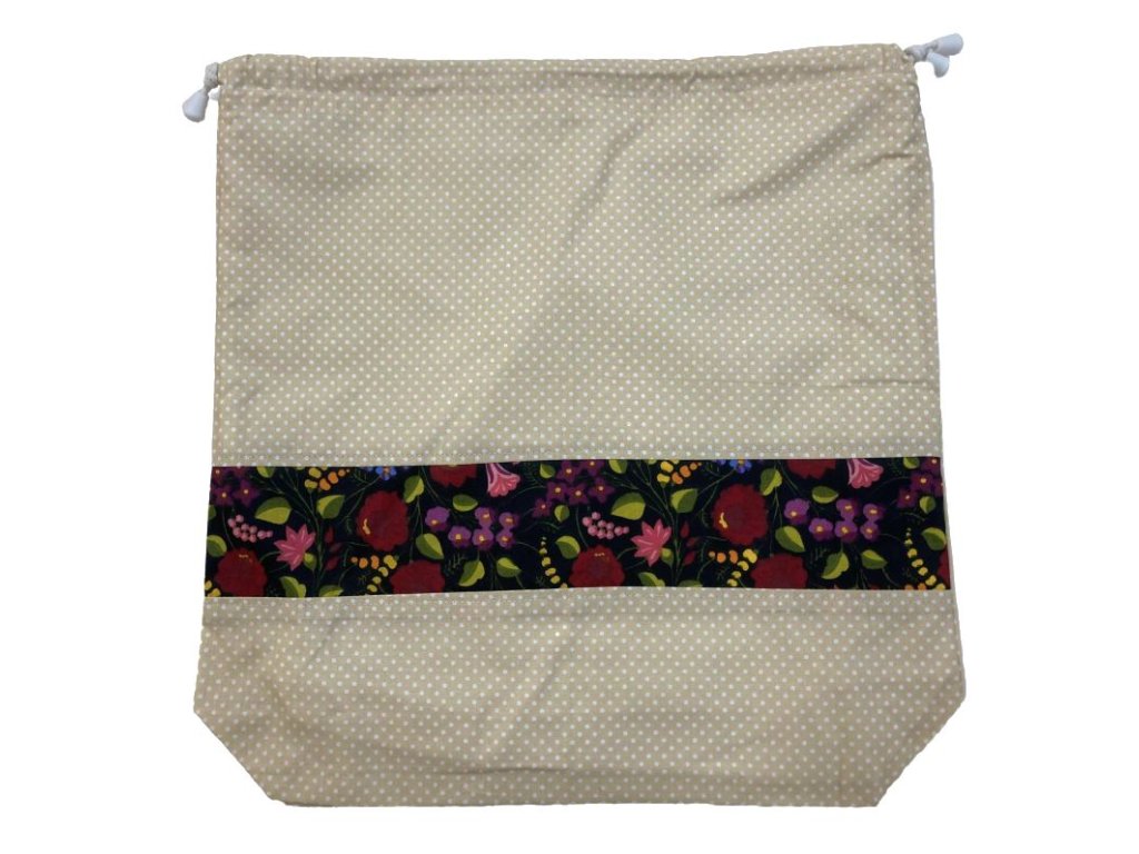 Nagy cipós zsák – bézs alapon fehér pöttyös, virágmintás szegéllyel