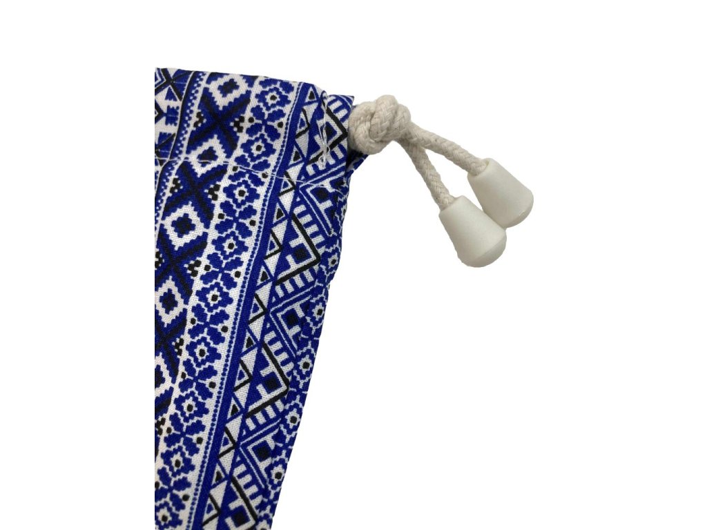 Ez a kék etno mintás nagy cipós zsák ötvözi a stílust és a praktikusságot. Tágas belső részének köszönhetően többféle kenyér vagy péksütemény is kényelmesen elfér benne. A pamut anyag légáteresztő, a behúzózár pedig megkönnyíti a használatot, így a kenyér hosszabb ideig puha és friss marad. A mosható kivitelnek köszönhetően könnyen tisztán tartható, és hosszú távon környezetbarát alternatívát nyújt az egyszer használatos csomagolások helyett.