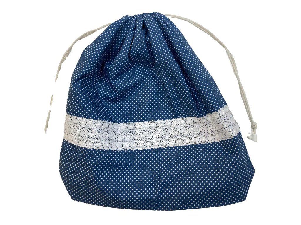 Nagy cipós zsák – kék pöttyös csipkebetéttel