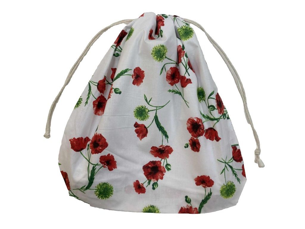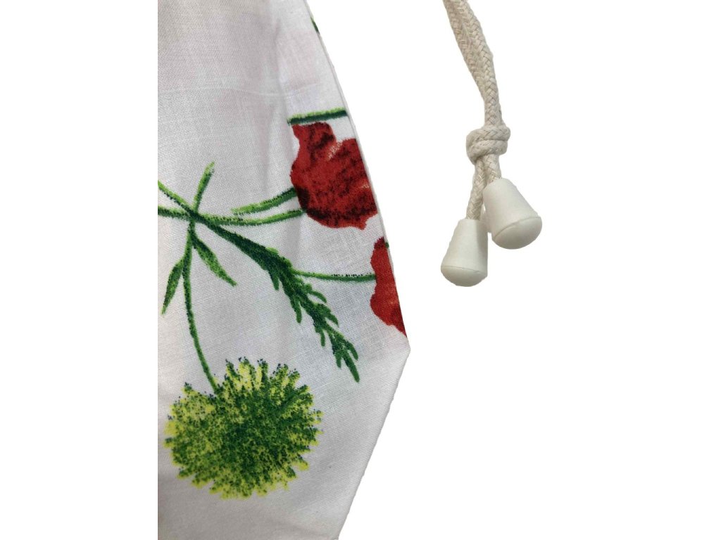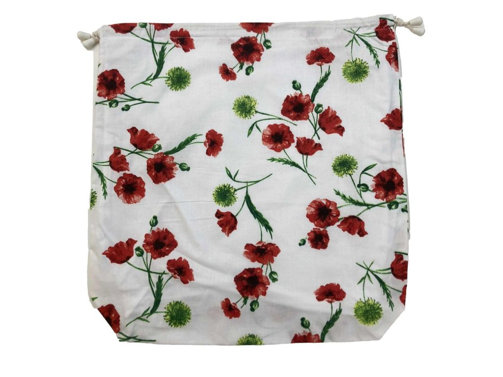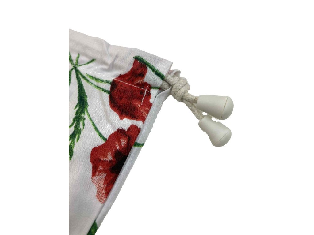 Ez a pipacs mintás nagy cipós zsák vidám és természetközeli hangulatot áraszt. Tágas belső tere lehetővé teszi, hogy akár egy egész cipót vagy többféle péksüteményt is elhelyezz benne. A pamut anyag tartós és könnyen tisztítható, így hosszú távon is megbízható megoldást nyújt. A behúzózsinór segítségével gyorsan zárható és nyitható, miközben a pékárut frissen tartja. Nemcsak praktikus, hanem dekoratív kiegészítője is lehet a konyhának, hiszen a piros pipacs minta egyedi és mutatós.
