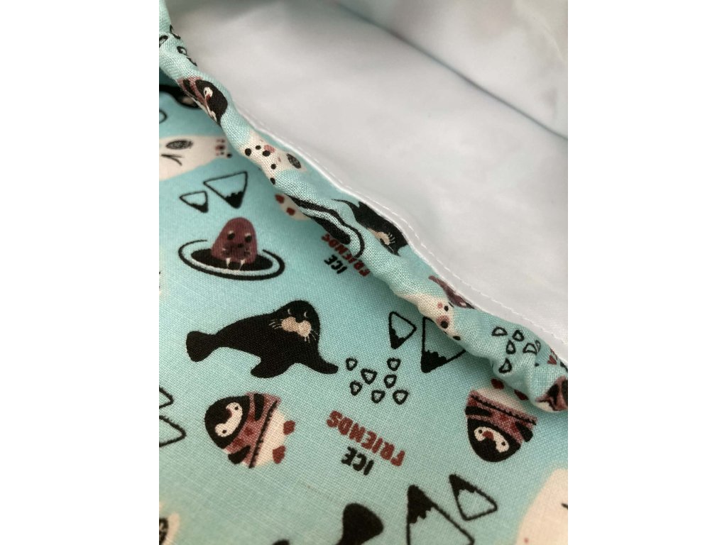 A behúzós záródás könnyen kezelhető, higiénikus és környezetbarát alternatívát kínál a műanyag zacskók helyett. A vidám „Ice Friends” minta miatt gyerekek és felnőttek kedvence lehet – ajándéknak is kiváló választás.