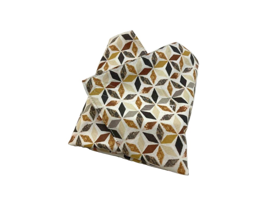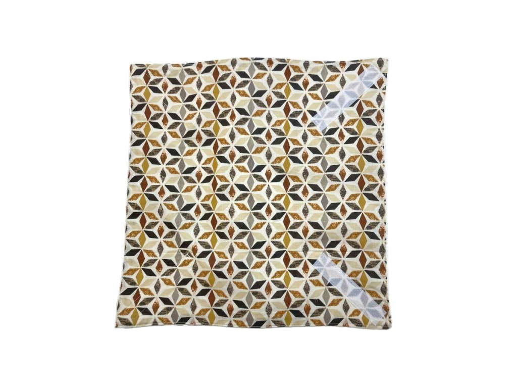 Ez a geometriai mintás barna-sárga újraszalvéta stílusos és praktikus választás a mindennapokra. Ideális szendvicsekhez, péksüteményekhez vagy kisebb nassolnivalókhoz. A PUL bélésnek köszönhetően vízlepergető, mégis szellőző anyag, amely segít frissen tartani az ételeket. Könnyen tisztítható, egyszerűen áttörölhető vagy mosógépben is mosható.