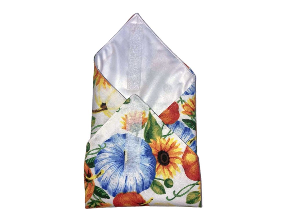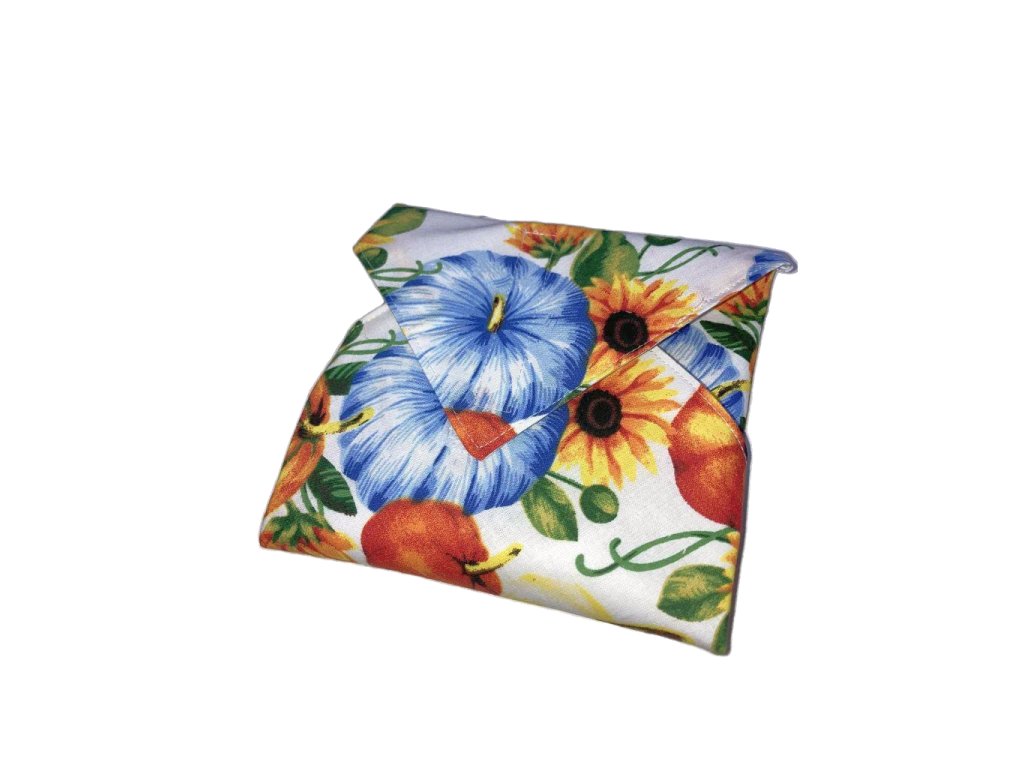 Ez a színes, tökös-virágos mintával készült újraszalvéta igazi őszi hangulatot idéz. Szendvicsek, pékáruk vagy akár gyümölcsök csomagolására is kiváló választás, miközben segít elkerülni az egyszer használatos csomagolóanyagokat. A pamut külső és a PUL bélés biztosítja az ételek frissességét, és megakadályozza a penészedést. Könnyen tisztítható, akár nedves ruhával áttörölve, akár mosógépben. Tépőzáras kialakítása miatt egyszerűen kezelhető és kis helyen elfér, így remek társ iskolába, munkába vagy kirándulásra. Strapabíró, többször használható és környezettudatos megoldás.