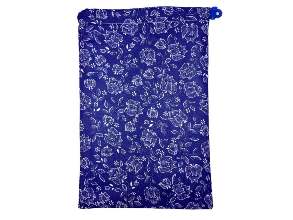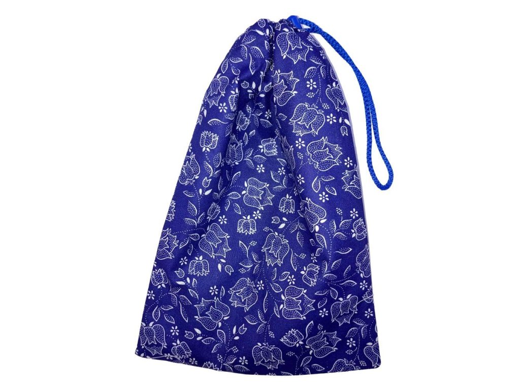 Uzsonnás zsák – kék alapon fehér virágmintás PUL béléssel, környezetbarát és mosható