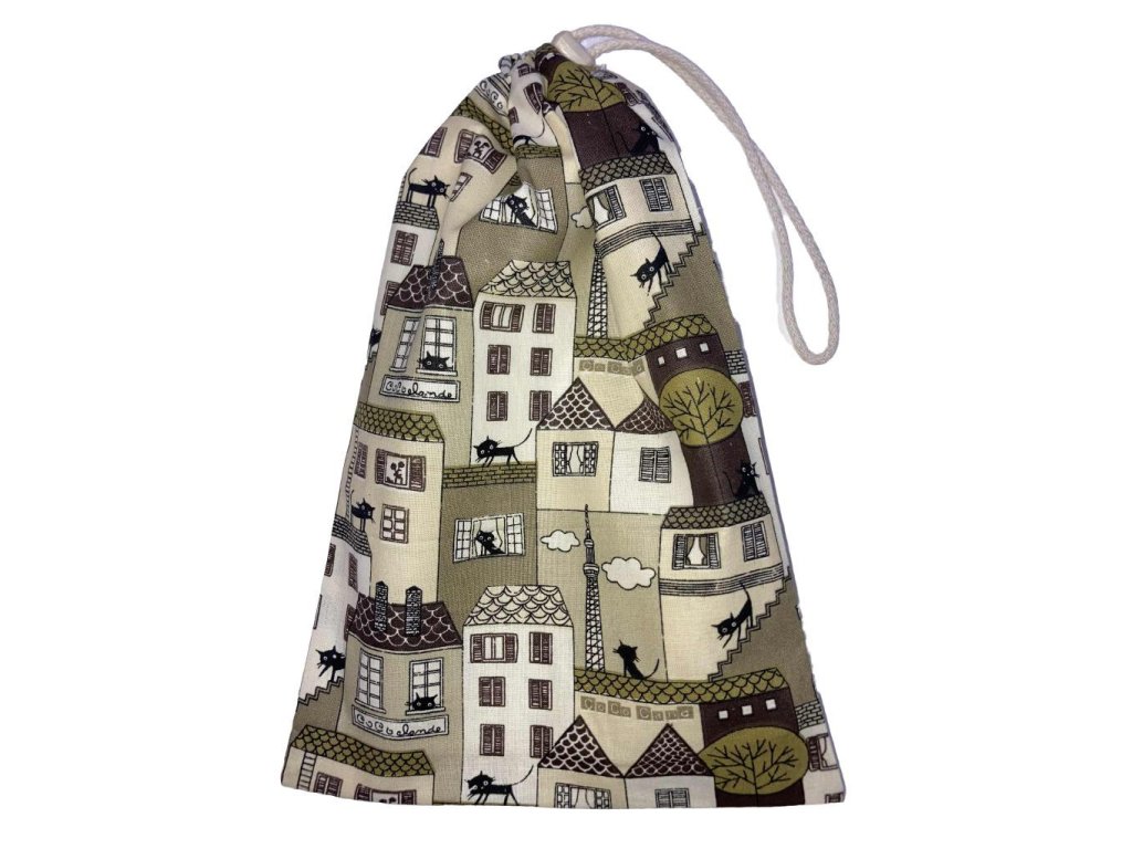 Ez a macskás házikós mintával készült uzsonnás zsák egyszerre stílusos és környezetbarát választás mindennapokra. A 100% pamut anyagból készült tasak könnyen tisztítható, tartós és sokszor újra felhasználható. Segít csökkenteni az egyszer használatos csomagolóanyagok mennyiségét, miközben biztonságosan tárolja a tízórait vagy az uzsonnát.
