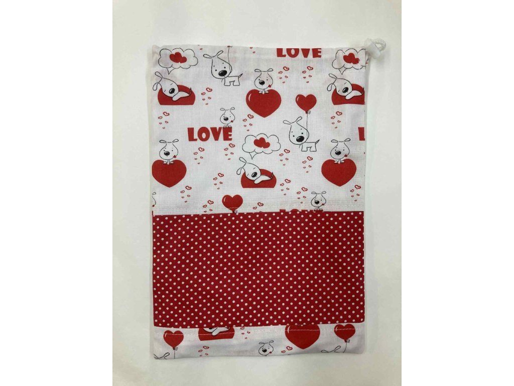 Ez a piros szíves, kutyás mintával készült uzsonnás zsák igazi kedvenc lesz a gyerekek és a kutyabarátok körében. Vidám mintázata szerethetővé teszi a mindennapi ételcsomagolást, legyen szó szendvicsről, péksüteményről vagy gyümölcsről. A strapabíró pamut külső és a PUL bélés gondoskodik róla, hogy az ételek frissek maradjanak, miközben a zsák könnyen tisztítható és újrahasználható. A behúzózár egyszerű kezelhetőséget biztosít, így akár iskolába, munkahelyre vagy kirándulásra is magaddal viheted. Környezetbarát megoldás, amely játékos mintájával még mosolyt is csal az arcokra.