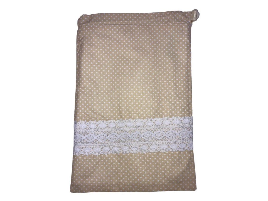 Uzsonnás zsák bézs pöttyös csipkés mintával – mindennapokra.hu